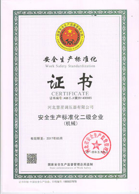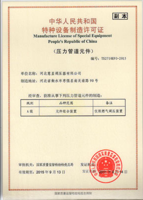 主導(dǎo)產(chǎn)品切斷式煤氣調(diào)壓器通過河北省經(jīng)濟委員會、省標(biāo)準(zhǔn)計量局認可,獲得采用國際準(zhǔn)認可證書